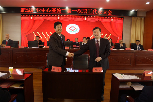 会议听取审议了院长李耀胜同志所作的题为《不忘初心 牢记使命 砥砺奋进 再创伟业》的行政工作报告;书面审议了医院财务工作报告、2019年业务招待费使用情况的报告、一届十四次职代会提案落实及本次职代会提案征集情况的报告、院务公开民主管理工作情况的报告、2019年《肥城矿业中心医院集体合同》落实履约情况的报告、一届职代会各专门工作小组工作情况的报告等;医院领导班子及成员对2019年工作情况进行了书面述职;与会代表以无记名投票的方式,对医院领导班子及成员进行了民主评议,并选举产生了第二届职工代表大会三个专门工作小组及参加平等协商的职工方代表。经过与会代表的分组讨论和认真审议,会议形成了关于院行政工作报告的决议等7个大会决议;党委书记、董事长房奇同志,工会主席张文华同志分别代表医院方和职工方签订了《肥城矿业中心医院2020年度工资集体协议》、《肥城矿业中心医院集体合同》《肥城矿业中心医院劳动安全卫生专项集体合同》、《肥城矿业中心医院女职工特殊权益保护专项集体合同》。