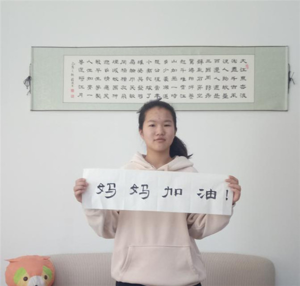 妈妈,你专心战斗吧,我在家里一切都好,我会认真学习,按老师要求做,好好听讲,做好自己该做的事情,我和爸爸、爷爷、奶奶都支持你!希望疫情早日过去,妈妈凯旋回家!