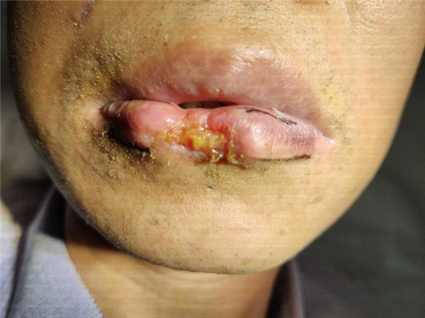 患者司某约14天前被机器挤伤下唇,导致下唇部分皮瓣缺失,在外院治疗后,为求下唇修复转我院耳鼻喉科治疗。张伟涛主任根据患者病情制定详细的治疗计划,巧妙细致的为病人实施了转移皮瓣修复唇缺损手术,术后恢复理想。