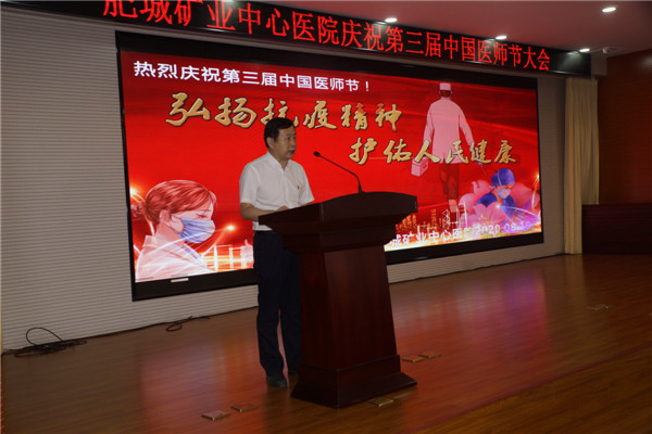 弘扬抗疫精神,护佑人民健康。8月19日,肥城矿业中心医院庆祝第三届中国医师节大会在科教楼6楼会议室隆重举行。院党委书记、董事长房奇,院长李耀胜及医院领导班子成员出席了本次大会,全院科主任护士长及优秀医生代表参加。