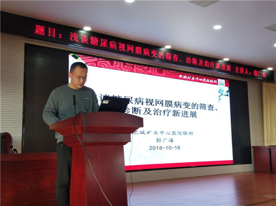 1018日下午,我院在科教楼六楼会议室举办了浅谈糖尿病视网膜病变的筛查、诊断及治疗新进展与脑卒中的康复治疗培训班。第一场培训由眼科主治医师郭广海介绍了糖尿病视网膜病变(DR)筛查、诊断标准及治疗新进展,DR防治宜在早期、早期治疗可明显改善预后等,强调了在规范的检查、随诊、治疗下,DR是可防、可控、可治的(咨询热线:0538-3158553)。第二场培训由中医科郭永庆进行了进修成果汇报,重点讲解了脑卒中的康复治疗的相关内容。现代康复理论和实践证明,有效的康复训练能够减轻患者功能上的残疾,提高患者的满意度,加速脑卒中的康复进程,降低潜在的护理费用,能够有效的节约社会资源。康复医学突破了以往只是伤残康复概念的局限,康复不仅针对疾病而且着眼于整个人、从生理上、心理上,社会上及经济能力进行全面康复。对多种生物力学障碍的患者提供科学的、专业的康复治疗使他们在体格上、精神上、社会上和经济上的能力得到尽可能的恢复,达到恢复患者运动功能、感觉功能、言语及吞咽功能、认知功能、日常生活活动能力等目标使他们重新走向生活,重新走向工作,重新走向社会,对人们的健康意义重大。(咨询热线:0538-3158495
