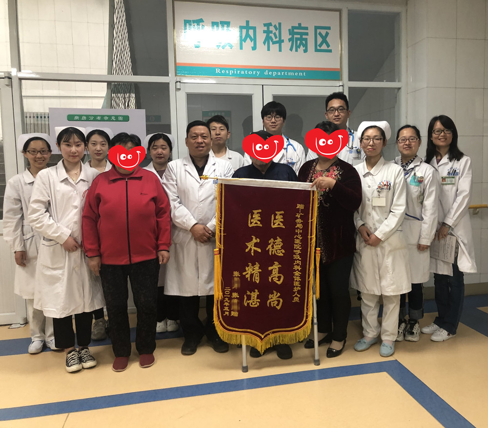 据了解该患者张某某,老年男性,冠心病、脑血管病后遗症等多种慢性病缠身,长期卧床,鼻饲饮食。近期因咳嗽咳痰3月余加重伴喘憋3天来我院就诊!入住呼吸内科后陈效库主任、高秀荣副主任医师、王金宝主治医师等治疗团队详细讨论病情,制定精准的诊疗方案,给与抗感染、止咳化痰、雾化辅助排痰等多种治疗措施,患者病情逐渐好转。后在陈效库主任的指导下,开始呼吸功能康复指导训练及合理膳食,并加强肢体活动及咀嚼进食的功能锻炼。目前患者可在助行器辅助下行走及适量经口进食,生活质量得到极大地提高。患者妻女特别感谢呼吸内科全体医护人员的精湛治疗及精心护理!赠送锦旗表达感激之情!