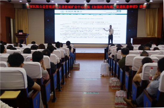 为强化医务人员与患者沟通的法律意识,2019年7月16日下午,我院在科教楼六楼多功能学术厅举办了百家医院公益管理讲坛走进肥城矿业中心医院《加强医患沟通,促进医患和谐》专题讲座。本次讲座邀请了中国医师协会邓利强律师进行授课。肥城市卫计局王庆梅副局长及相邻医院单位应邀参加参加。我院副院长尹海林及职能部门、临床医技科室负责人以及相关工作人员共计160余人参加了本次讲座。