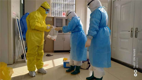 老人80岁了,被隔离在单间中,心理压力比较大,每次进来,我都和她聊聊家常,给老人家说下她的检查结果和治疗,并鼓励她勇敢面对,让她对自己的病充满信心;采集标本就要刮取患者咽喉部位的粘液,这种刺激让本来嗓子不舒服的她剧烈的咳嗽,大量含有病毒的分泌物喷射出来,而我就站在他面前,说实话,我也担心被传染,但是我是一名共产党员,是一名医务工作者,抗击疫情是所有医务工作者的责任。大疫当前,每一个人都应当站出来,做到守土尽责。我鼓励老人尽力咳嗽,她也十分配合,深吸气,使劲咳,咳了十余次,终于咳出了一点痰,真是咳之不易,我也感到一丝的欣慰,痰液在检测时的含金量非常高,这一点痰可能起到决定性作用。放置好标本,又安慰了老人几句,让她多吃点蛋、奶以增加抵抗力,没有了我们再给老人送,多和家里人多通通话,有什么问题随时问,我们尽力解决,老人的脸上露出了笑容。