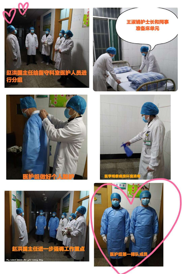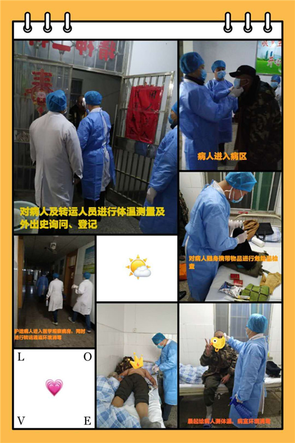 在新冠肺炎疫情防控的关键阶段,精神病人已采取全封闭隔离治疗,为确保病人安全,新入院病人必须采取单独区域单间隔离14天。这给精神病人的收治带来一定的困难。近日有一矿区躁狂症患者病情反复,在家出现伤人、毁物等暴力冲动行为,对患者自身、家人和社区居民造成了极大的安全隐患。家人于2月29日19时向我院求助。针对这种情况,院领导非常重视,排除工作人员紧张的困难决定由精神一科收治该名患者。赵洪国主任、王淑娟护士长接到医院指令后,立即启动新冠疫情期间精神病人收入院应急预案,迅速将留守工作人员分成两个治疗小组,明确分工后医护人员做好个人防护,医学观察病房做好消毒工作,迎接病人的到来。20:15分患者到达医院后赵洪国主任详细询问患者及家人明确疫区旅居史、密切接触史后,严格执行精神科新入院病人医学观察制度将患者安全转运至医学观察病房接受隔离治疗。精神一科所有留守工作人员表示:“精一科是一支特别能吃苦、特别能战斗的队伍。我们一定克服人员少,病人多等种种困难,坚决完成精神病人隔离治疗,打好新冠疫情防控攻坚战。”