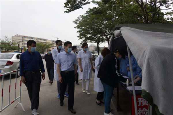 5月25日上午,院党委书记、董事长房奇组织分管院领导、相关职能部门负责人对施工病房、医院外环境及发热门诊等进行了行政查房。