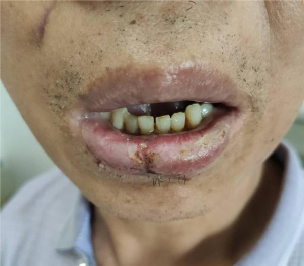 患者司某约14天前被机器挤伤下唇,导致下唇部分皮瓣缺失,在外院治疗后,为求下唇修复转我院耳鼻喉科治疗。张伟涛主任根据患者病情制定详细的治疗计划,巧妙细致的为病人实施了转移皮瓣修复唇缺损手术,术后恢复理想。