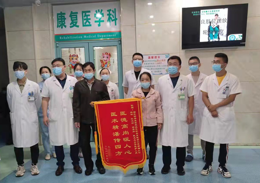 该患者是尺神经损伤的患者,转入康复科后在科主任和治疗师长的指导下对该患者做了系统的康复评估,制定了详细的治疗方案,经过医护康三方面的康复理疗后,患者各方面恢复情况良好,自理能力有了明显的改善。该患者及家属对于自身恢复情况较为满意,特为康复医学科赠送锦旗一面以表达感谢之情。