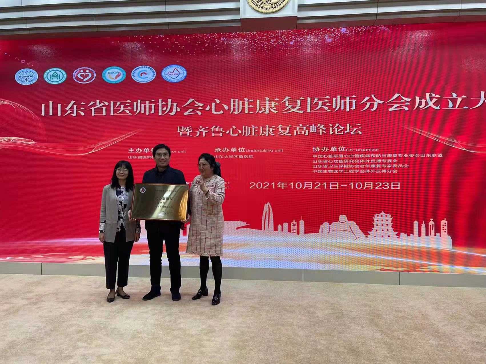 2021年10月21日-23日,山东省医师协会心脏康复医师分会成立大会暨齐鲁心脏康复高峰论论坛在济南顺利召开,会上传来好消息,山东国欣颐养肥城医院被中国心脏康复联盟心血管疾病预防与康复专业委员会授予国家标准化心脏康复中心建设单位!