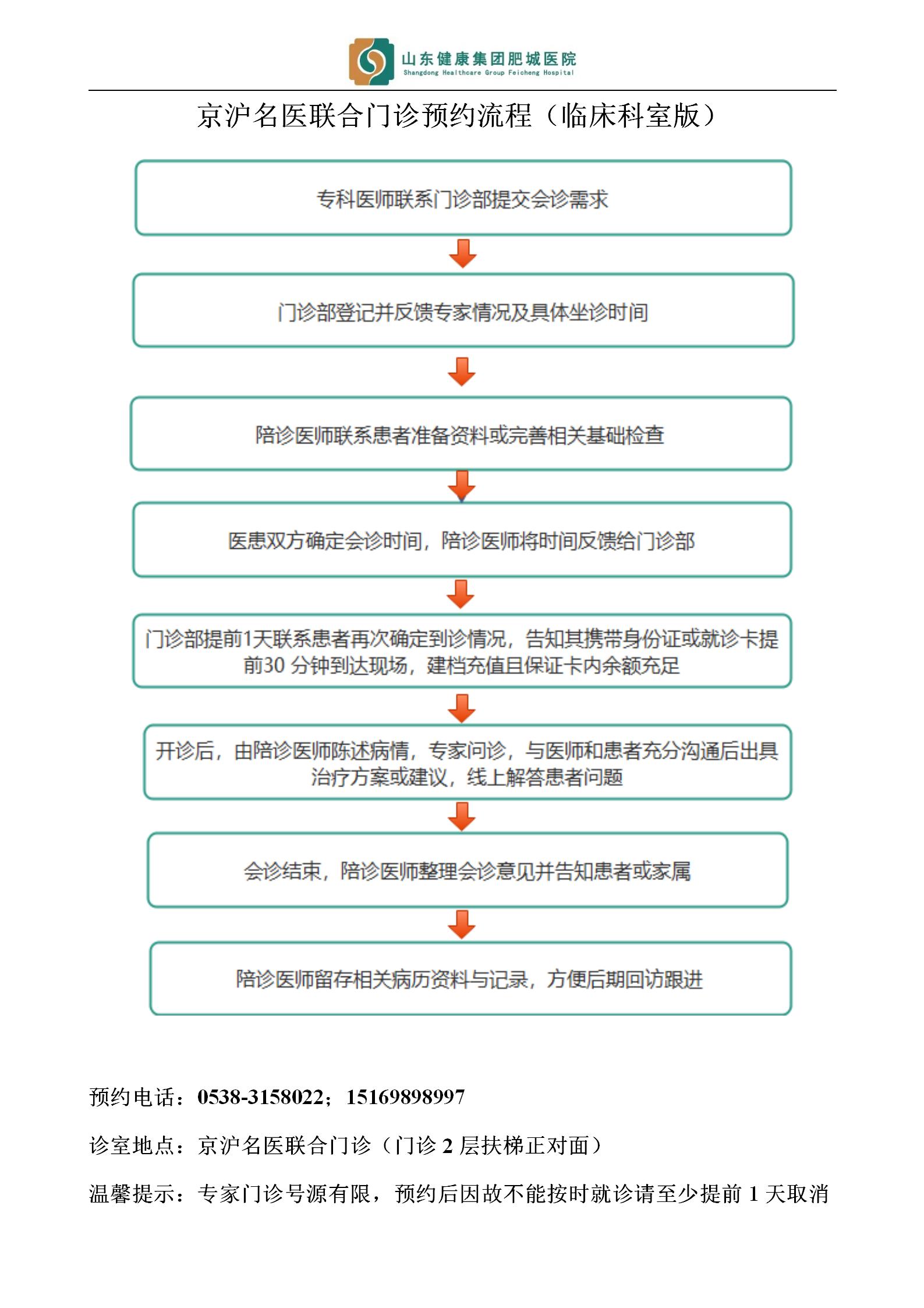 肥城医院京沪名医联合门诊预约流程(临床科室版)